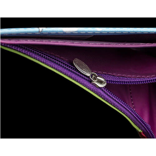 • Wallet features 4 card slots, a windowed photo slot, a note pocket and a zippered coin pocket!