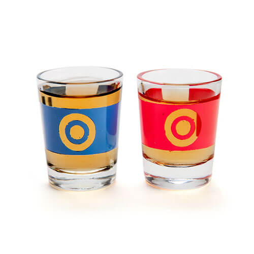 - Includes 2 shot glasses and 18 mini chairs