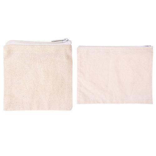 • A blank fabric pouch ready for painting, dyeing, or customizing with flair.