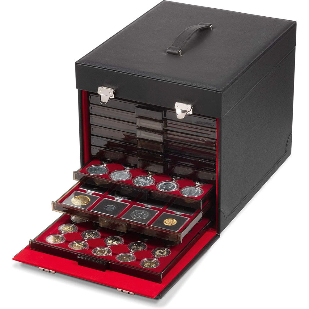 • Faux leather cargo case designed for transporting and storing coin collections.