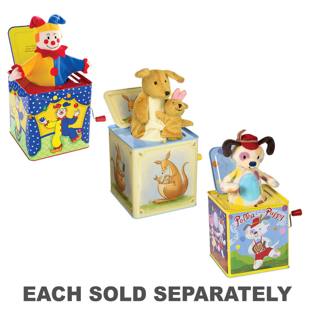 • This award-winning, classic Jester Jack in the Box musical toy will bring joy and delight to children for generations