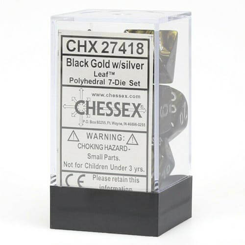 D7 Die Set Dice Leaf Polyhedral (7 dés/noir or/argent)