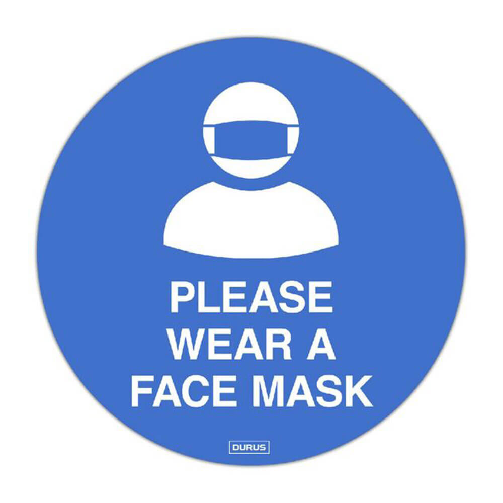 Cette autocollant Durus Floor est idéale pour s'assurer que les clients et les visiteurs suivent les restrictions lors de votre lieu d'affaires. Ce décalque de plancher en PVC est antidérapant et durable, tout en étant facile à appliquer. Il indique «veuillez porter un masque facial» et peut être utilisé sur la plupart des types de plancher, y compris des planches polies, du béton, un tapis de tas court et des carreaux.