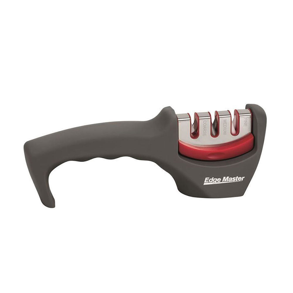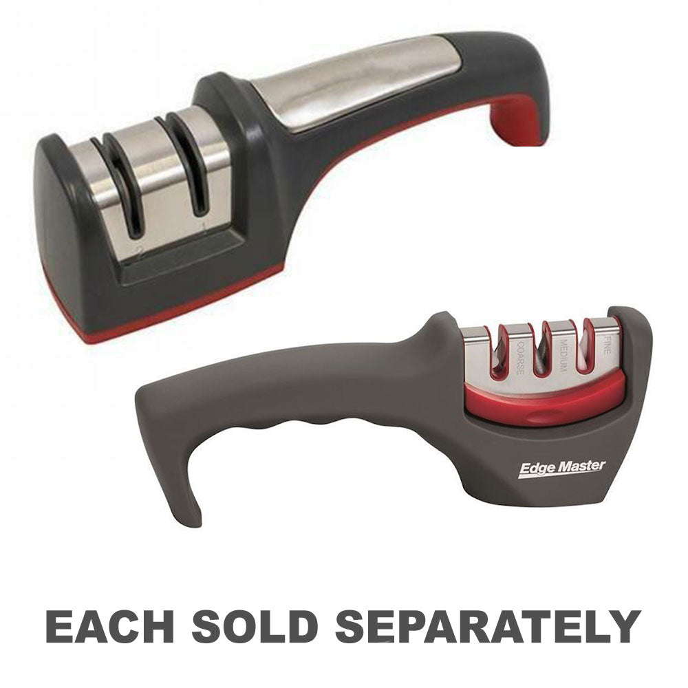 Le pointeur de couteaux Edge Master à 2 étages dispose d'une poignée ergonomique et d'une base en caoutchouc non glissante pour une prise sûre et sécurisée. Si vous trouvez que vos couteaux sont particulièrement ternes, utilisez le stade grossier qui présente une roue en diamant, qui vient de retirer ce bord. La scène fine présente une roue en céramique qui polira et recrutra le bord vers une finition tranchante de rasoir.