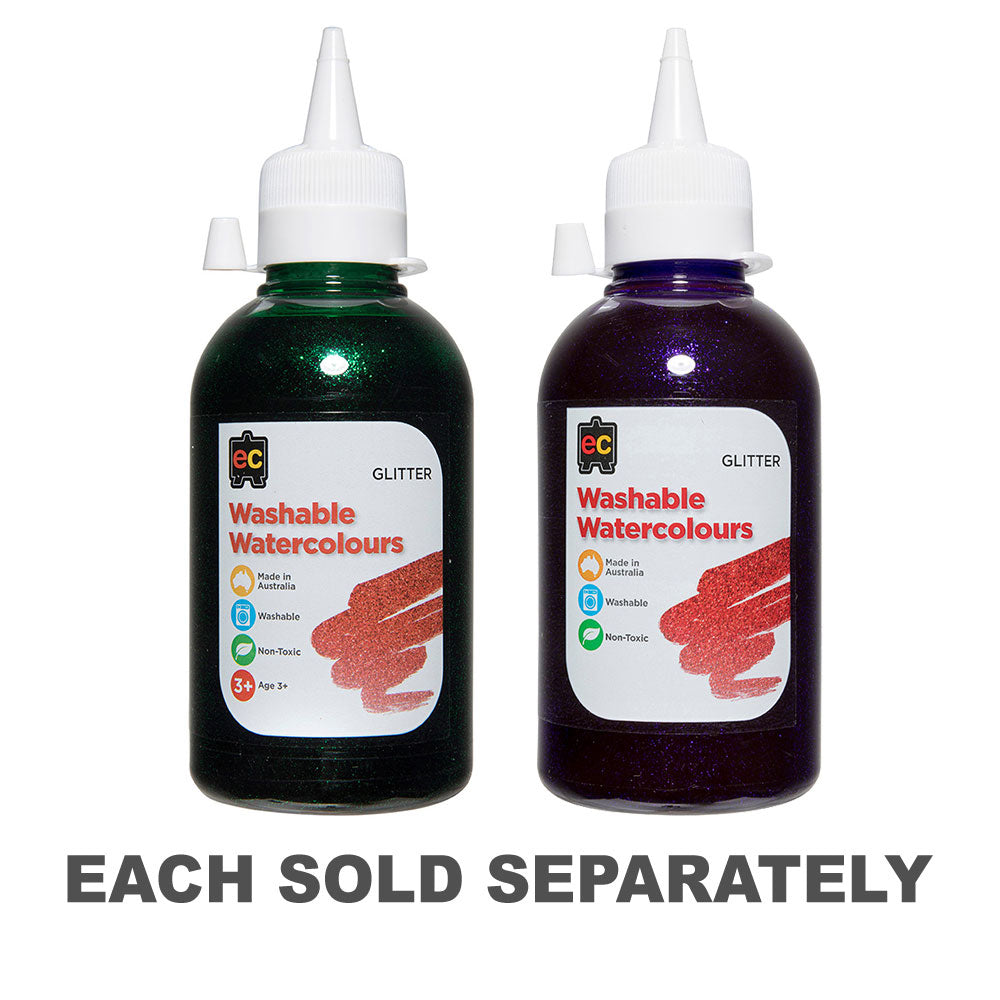 Contained in 250ml eco-friendly PET bottles, our Glitter Washable Watercolours not only add luminance to your art but also show our commitment to the environment.