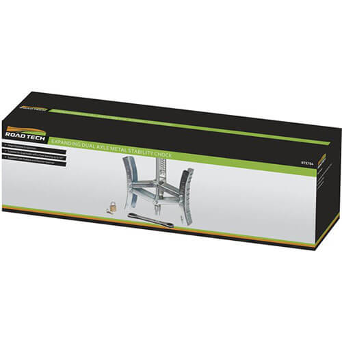 Conçu pour s'adapter entre les pneus d'une caravane à essieux tandem, d'un camping-car, d'un camping-car ou d'une remorque pour stabiliser la suspension, ce qui élimine le balancement, le balancement et tout autre mouvement pendant le stationnement. Pour l'installation, il vous suffit de tenir la cale entre le pneu à l'aide de la poignée intégrée, de l'étendre pour l'adapter aux pneus, de serrer à la main l'écrou sur le boulon de serrage, puis de terminer à l'aide de la clé à cliquet incluse. Un cadenas est également inclus pour sécuriser la cale en place. Fabriqué en acier épais avec un placage de zinc résistant à la corrosion. Convient aux essieux doubles avec un espacement des pneus jusqu'à 10=