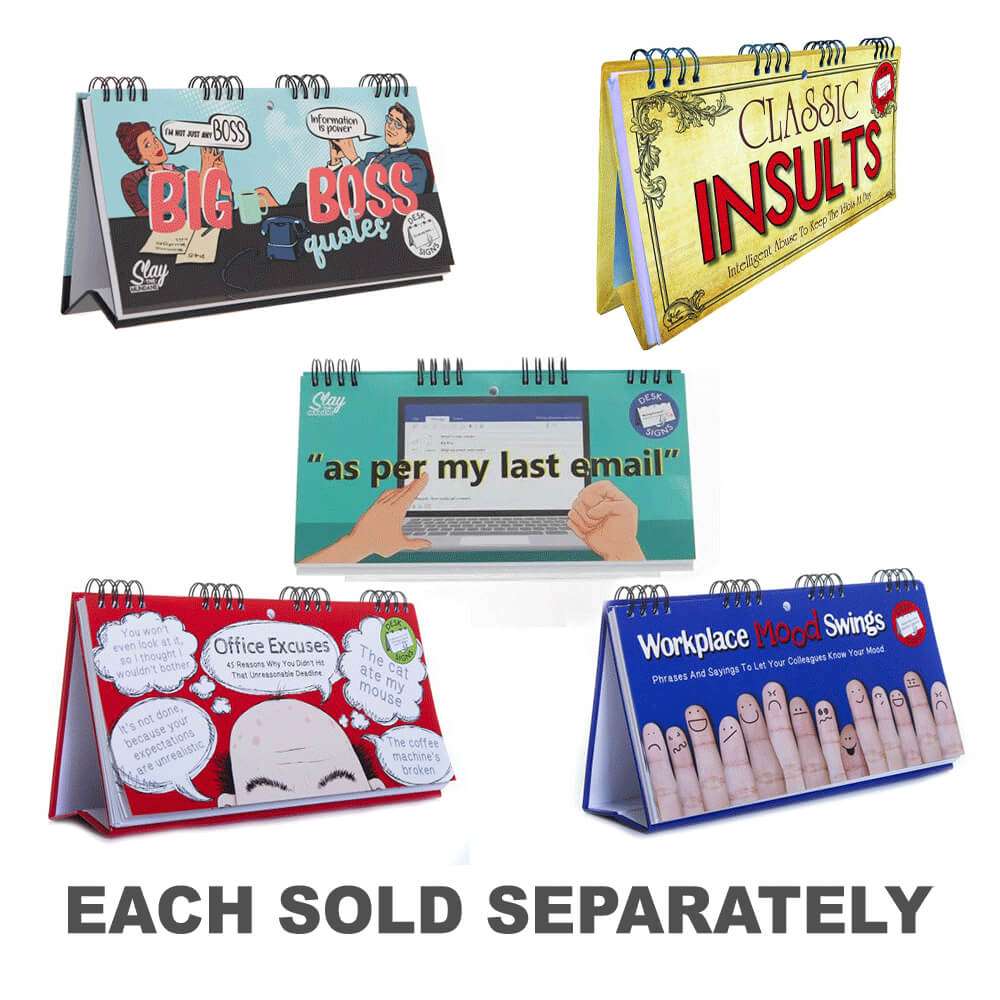 • Ce flipbook de nouveauté est plein de citations drôles parfaites pour les boss, les superviseurs ou toute personne responsable!