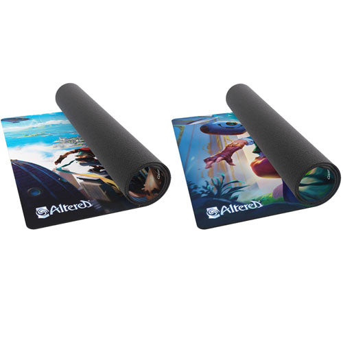 This premium quality, full color printed, and officially licensed Altered Prime Playmat is a must-have accessory for every passionate gamer! Available in three premium-quality prints of astonishing art, it brings the exciting atmosphere of Altered right to the gaming table. The Prime Playmat enriches the game and perfectly complements every round played! The softly cushioned playmat is 2mm thick and protects playing cards from rough or dirty surfaces. Each mat is outfitted with an ultrafine surface and an anti-slip back side that keeps it safely in place during gameplay. The fascinating design, the comfortable feel, and soft material are ideal for an upgraded gaming experience or a home desktop. The Playmat is perfect for all enthusiastic fans of Altered as well as players of TCGs, LCGs and a vast variety of games alike