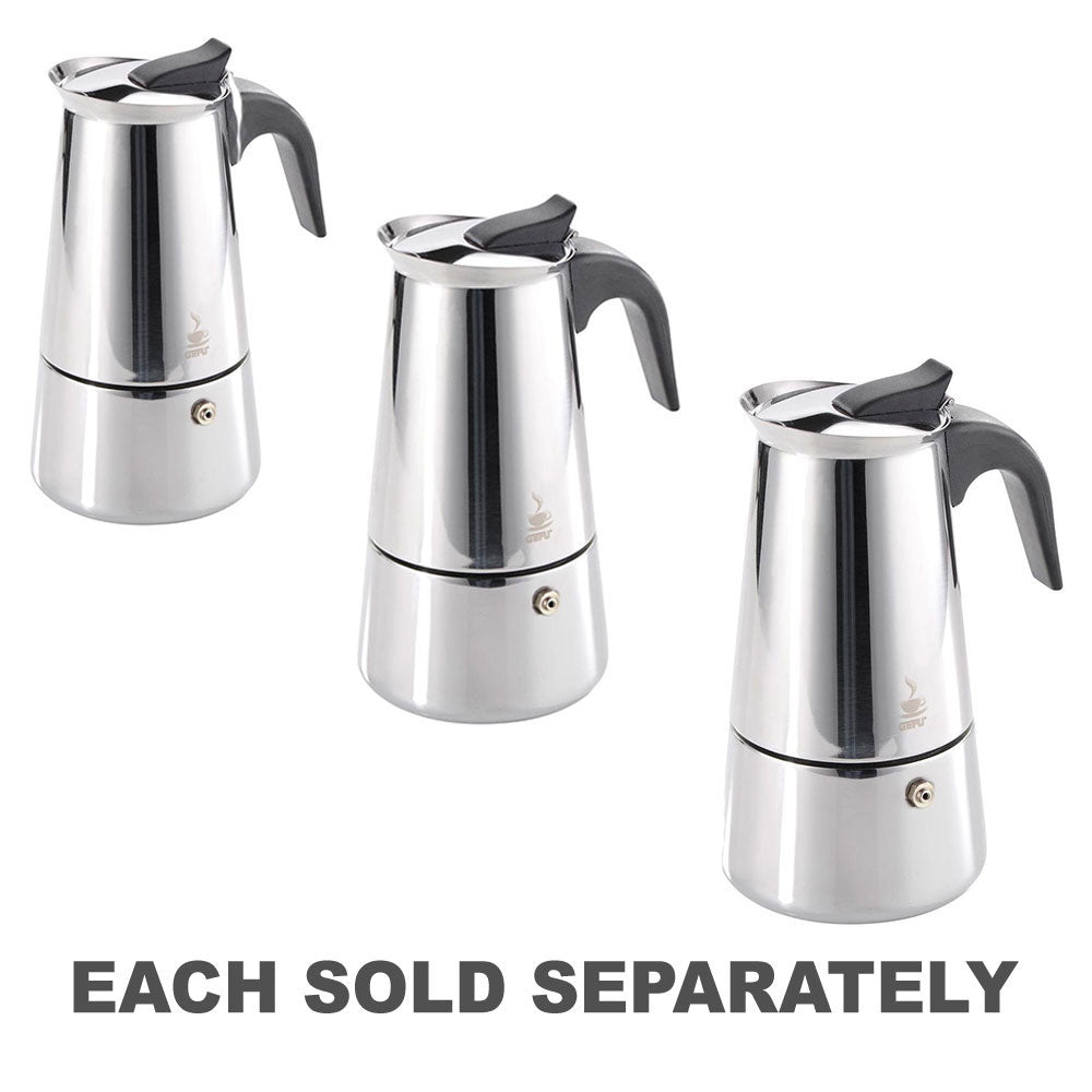 Avec le fabricant d'expresso de GEFU, vous pouvez brasser un délicieux expresso aromatique en un rien de temps. Le dispositif moderne et grand est en acier inoxydable et dispose d'une poignée noire isolée à la chaleur. Versez simplement de l'eau et les grains de café moulues, vissez ensemble et faites bouillir sur le poêle jusqu'à ce que le café parfumé soit prêt - puis savourez-le. Capacité: 6 tasses.
