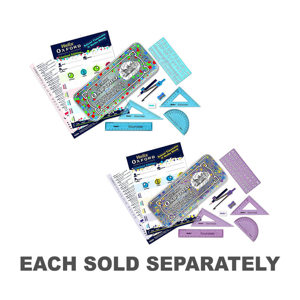 • L'ensemble contient une boussole, un diviseur, une règle en plastique, un ensemble de 45 degrés, un ensemble de 60 degrés, un rapporteur à 180 degrés, un gomme, un crayon, un taille-creux et une boîte en étain traditionnellement conçue.
