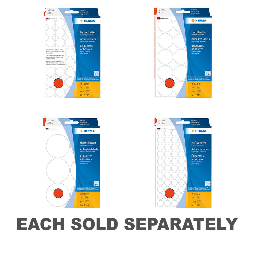 • Add a pop of color and visibility to your labeling with these luminous red dot labels.