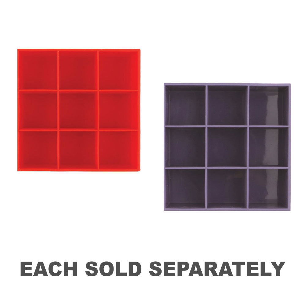 • Trays stack into a vertical cube to take less space in freezers than traditional ice trays