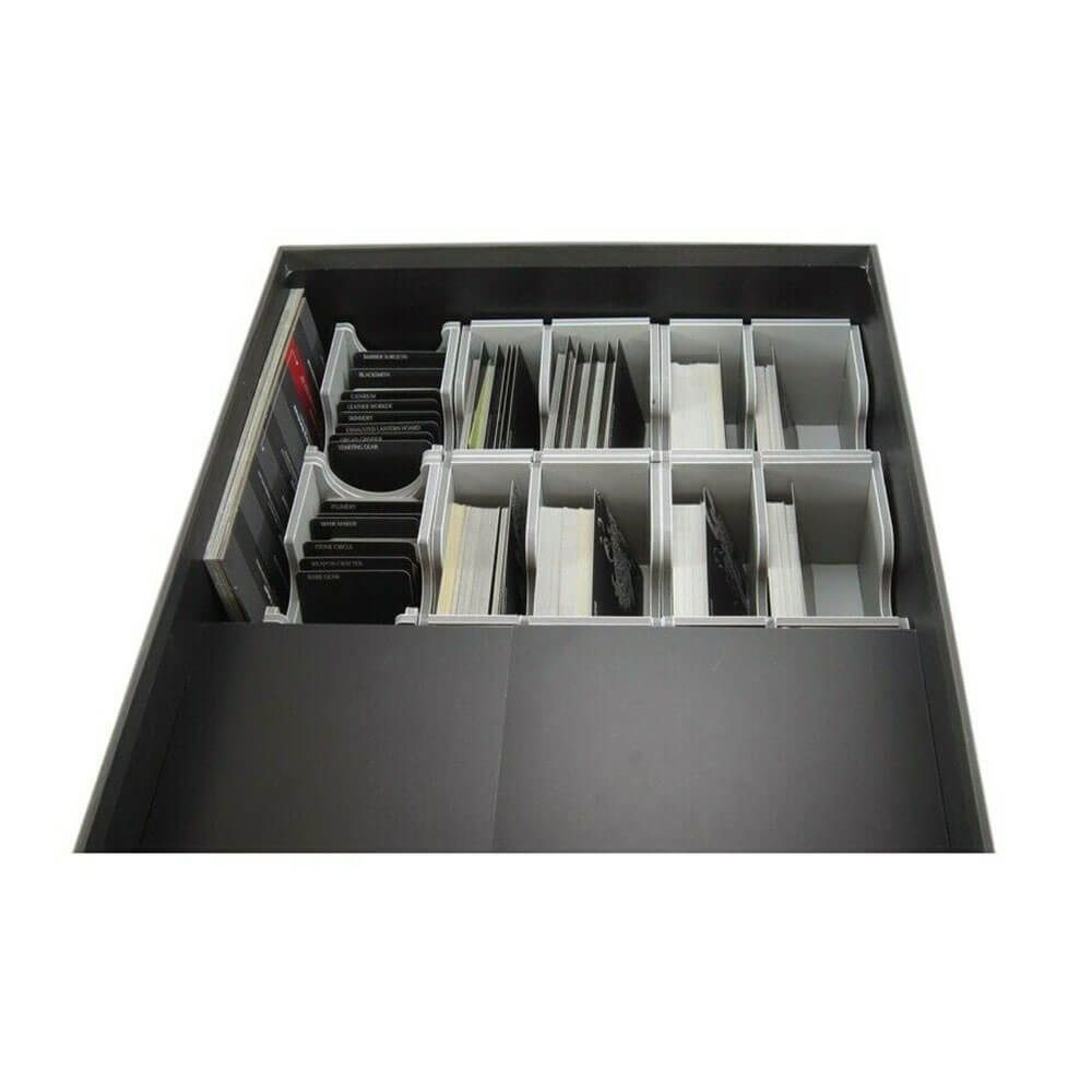• Cet insert de la Campagne 2 est conçu pour être compatible avec les extensions Kingdom Death Monster®, offrant de l'espace pour 560 cartes de taille standard supplémentaires et 300 cartes d'équipement supplémentaires.