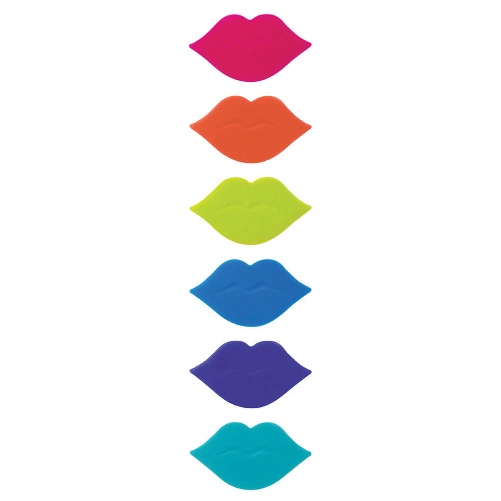 • Ensemble de six marqueurs en forme de lèvres dans différentes couleurs vibrantes en silicone durable