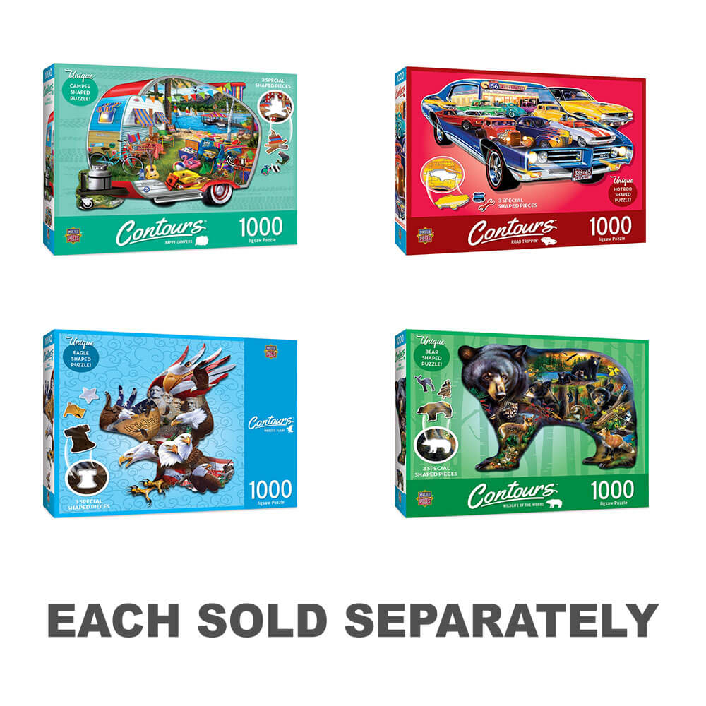 Ce puzzle en forme de caravane de 1000pc. Profitez d'un week-end sur le camping dans ce puzzle en forme de camping-car. Comprend trois pièces de forme spéciale dessinées à la main dans la diéline. Pour réduire leur impact sur notre environnement, le panneau de puce utilisé dans ces puzzles est fait de matériaux recyclés.