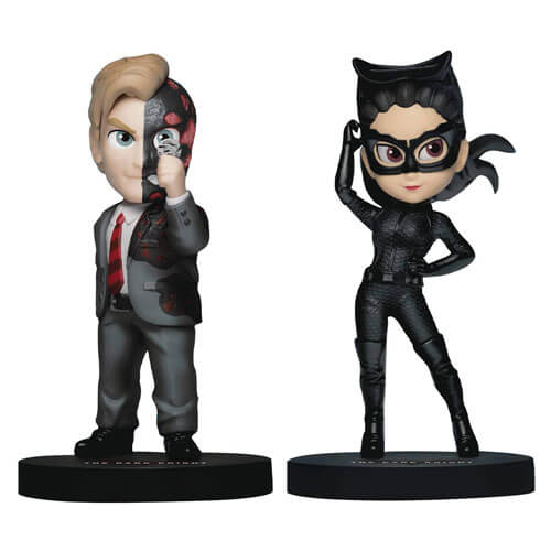 Ensuite, sans doute le méchant le plus célèbre de la franchise: le Joker! Ici, il est vu porter un ensemble de grenades sous son long trench pourpre, la personnification parfaite du chaos! Catwoman, alias Selina Kyle, fait également une apparition, un personnage avec une relation d'amour complexe et séduisante avec Batman et Bruce Wayne, mais qui aide finalement à sauver la journée! Two-Face, l'anti-héros fait l'ultime pour brouiller la ligne entre le méchant et le héros déchu! Harvey Dent était, prêt à être le chevalier blanc de Gotham, se retrouve tragiquement par un côté de son visage, en utilisant une pièce pour prendre des décisions basées sur la chance! Enfin, le méchant le plus grand et le plus fort à laquelle Batman a encore affronté, le fléau d'obstacle est intelligent autant qu'il est féroce. La seule personne à vraiment briser Batman, mais pourrait-il briser son âme?