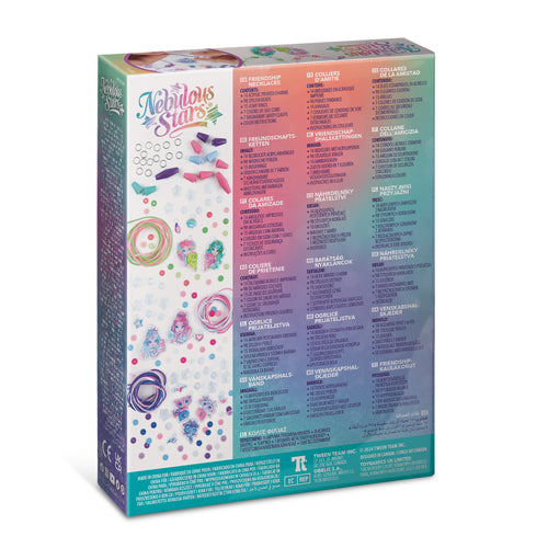 Kit includes 7 glittery acrylic printed charms, 7 mini acrylic printed charms, 84 various beads, 14 jump rings, 7 colors of silk cords, sheet of rhinestone stickers