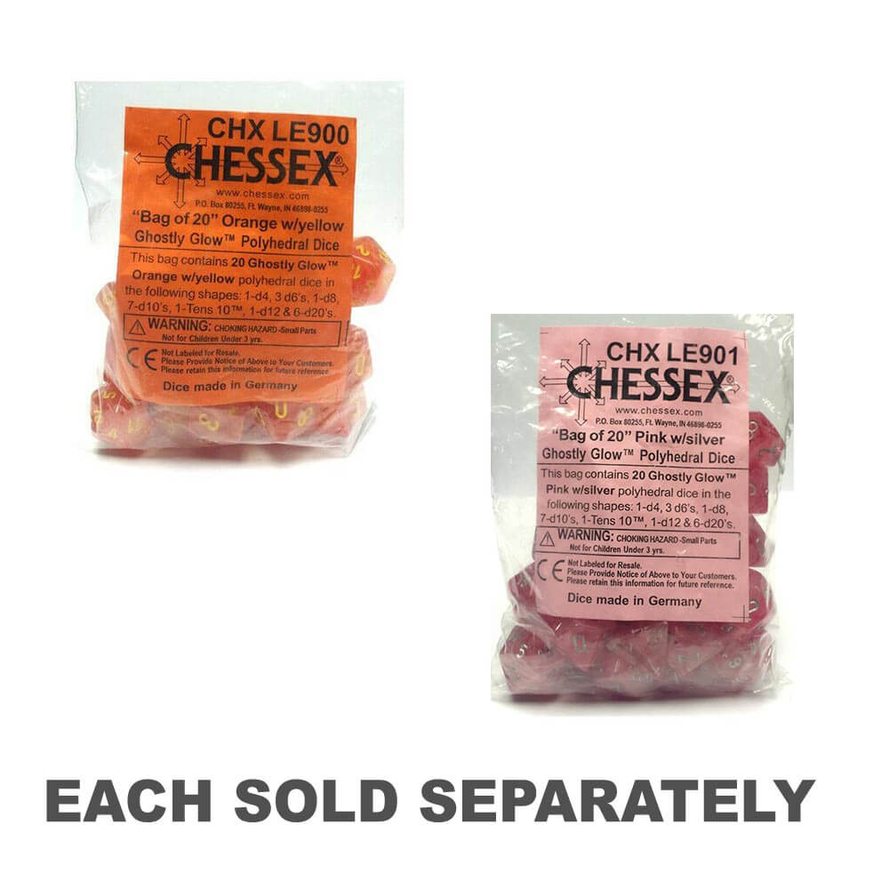 - Sac de 20 Dice polyédrique Ghostly Glow - Orange avec des nombres jaunes