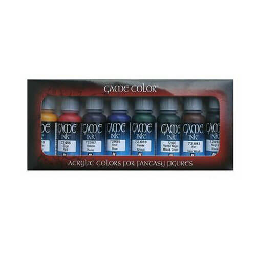 Collection de 8 ensembles de couleurs de couleur de jeu pour les modèles de peinture et les miniatures. Chacun de ces ensembles a une sélection de couleurs spéciales pour les chiffres de Paiting, etc. contient 8 bouteilles de 17 ml. (avec pipette) et le tableau des couleurs. Couleurs 72.140 Skintone lourde 72.141 Red lourd 72.142 Violet lourd 72.143 Bleu lourd 72.144 Blue de bleu lourd 72.145 Gris lourd 72.146 Vert lourd 72.147 Blackgreen lourd
