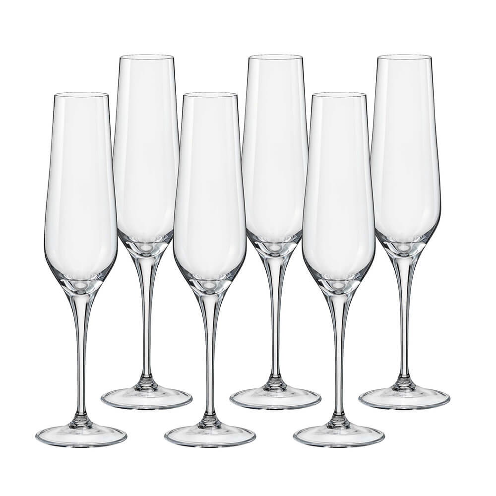 Klassische Form eines Champagnerglases mit leicht konischem Hals und fein geschliffenem Rand. Brillante Arbeit und langlebiges Glas, das spülmaschinenfest ist. Elegante Champagnergläser machen Ihre festlichen Momente noch angenehmer. Als Geschenk geeignet. Weitere Sektgläser finden Sie hier.
