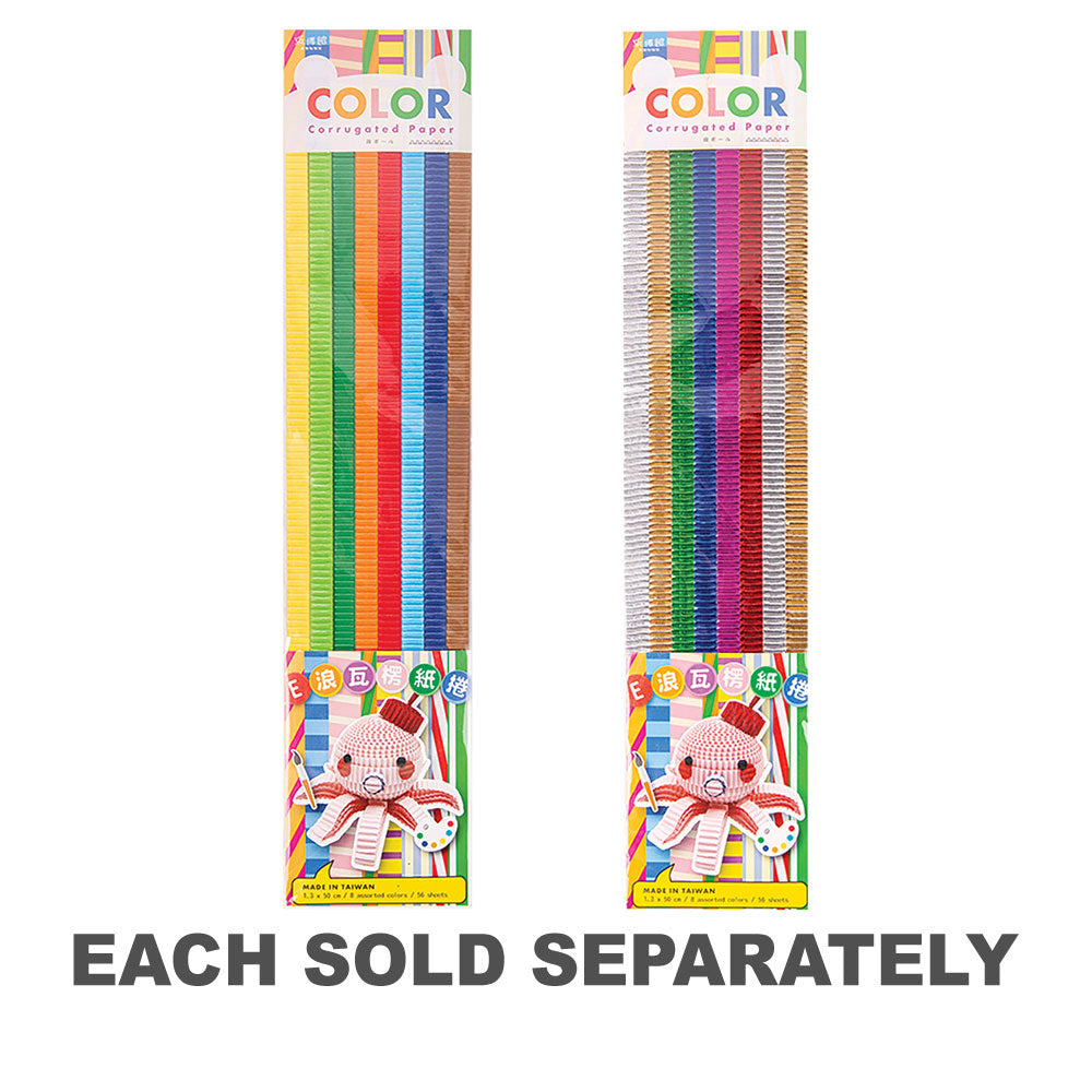 - Pack of 56 assorted corrugated coloured strips