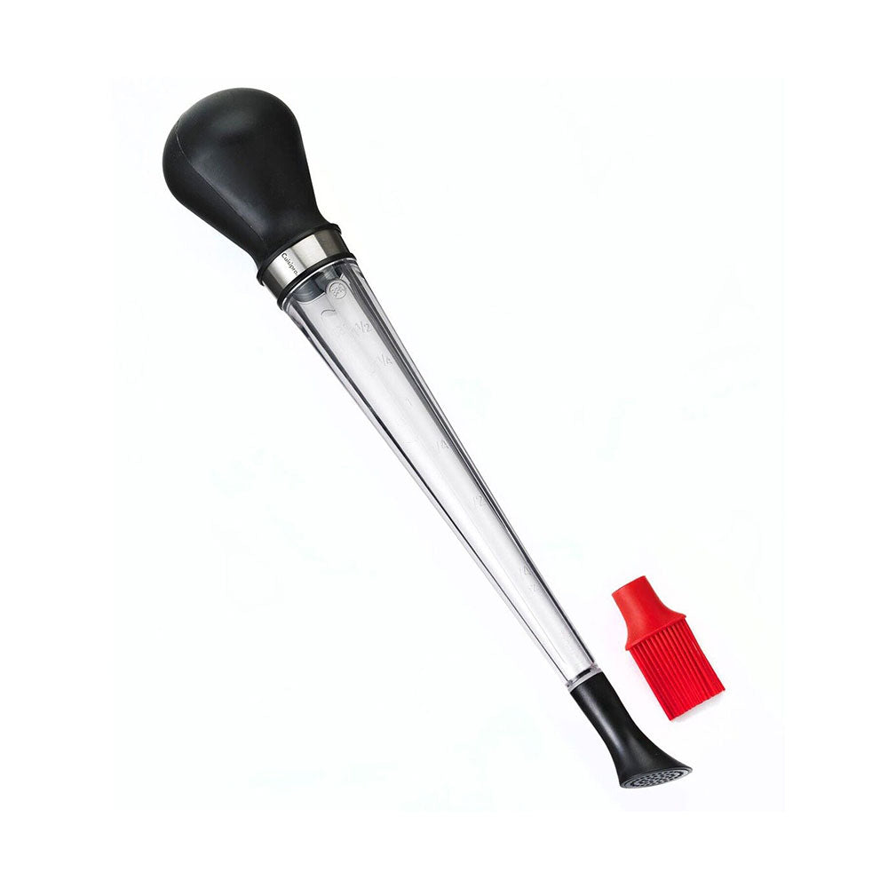 Der Cuisipro 3-in-1 Bratenkopf enthält eine Silikonbürste zum gleichmäßigen Beschichten von Lebensmitteln und einen Nylon-Duschkopf für eine breite Brause zum schnellen Begießen oder die Verwendung ohne Aufsätze für einen starken Saftstrahl. Große und bequeme Silikonkugel, die angenehm zu greifen und leicht zu drücken ist. Klares Fenster mit Messungen auf dem Hauptkörper des Basters. Vielseitig, sicher, leicht und einfach zu bedienen. Top Regal spülmaschinenfest..