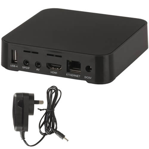 Mit diesem fortschrittlichen Android-Mediaplayer können Sie im Internet surfen, Android-Spiele und -Apps ausführen oder Ihre Lieblingsfilme in 4K- oder 1080p-Auflösung auf Ihrem HD-Fernseher ansehen. Es verbindet sich über Wi-Fi oder ein kabelgebundenes Netzwerk mit dem Internet und über HDMI mit Ihrem Fernseher. Ein digitaler Audioausgang ermöglicht den Anschluss an einen Verstärker oder Aktivlautsprecher. Mit dem Betriebssystem Android 7.1 Nougat können Sie den Player mit Ihrer eigenen Auswahl an Android-Apps und YouTube-Clips anpassen. Wenn Sie keine Inhalte aus dem Internet oder den internen 8 GB Speicher streamen, können Sie Medien von Ihrer USB-Festplatte, Ihrem Flash-Laufwerk oder Ihrer SD-Speicherkarte ansehen. Alle gängigen Audio-, Foto- und Videoformate werden unterstützt. Inklusive Infrarot-Fernbedienung, HDMI-Kabel und Netzteil.