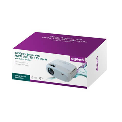 Dies ist ein tragbarer HD-LED-Projektor, an den Sie eine HDMI-, AV- oder VGA-Videoquelle anschließen oder über den integrierten Mediaplayer direkt von einer SD-Karte oder einem USB-Stick wiedergeben können. Der Projektor zeigt mit einer nativen Auflösung von 1080p an und skaliert Quellen automatisch von 480i auf 1080p. Ideal für Büropräsentationen oder das Kinderspielzimmer. Der Projektionsabstand beträgt 1 bis 7 m, was eine sichtbare Größe von etwa 32 bis 210 Zoll ergibt. Eine voll ausgestattete Fernbedienung ist ebenfalls im Lieferumfang enthalten.