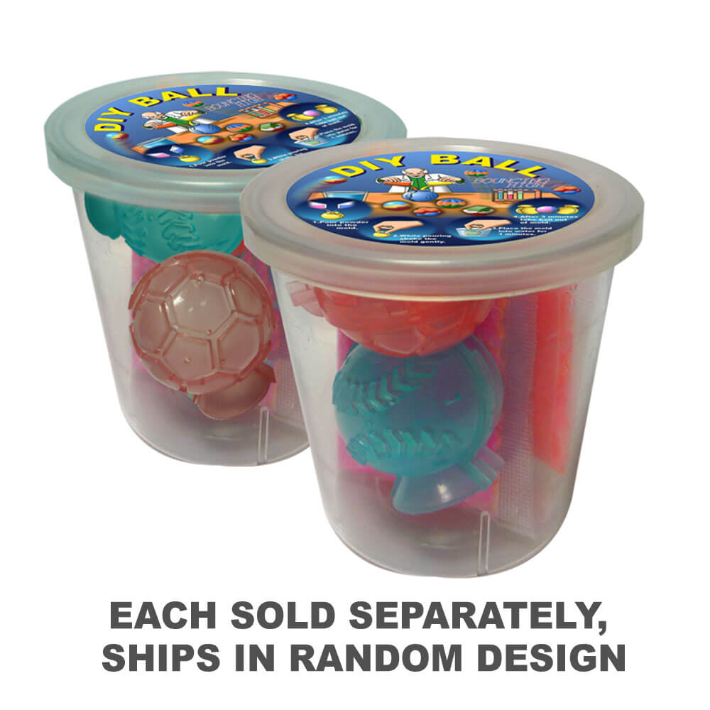 - Das Kit enthält zwei Kugelformen und vier farbige Pulverbeutel.