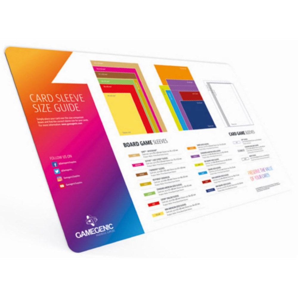- Measure and organize your card sleeves with the Gamegenic Sleeve Size Counter Deskpad Mat.