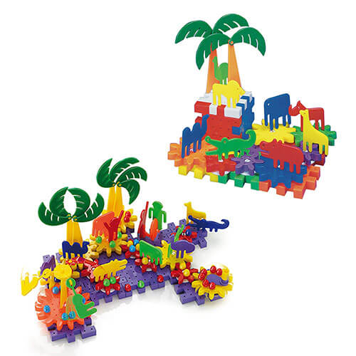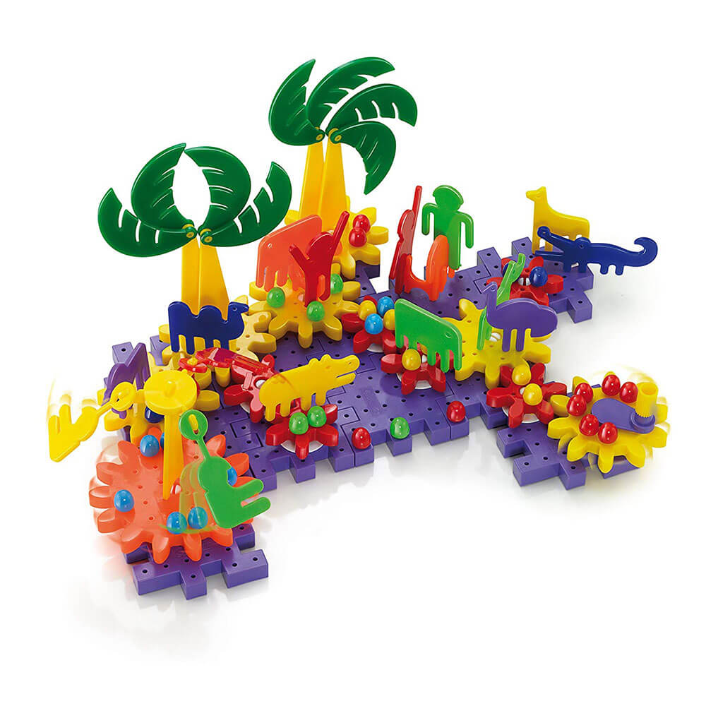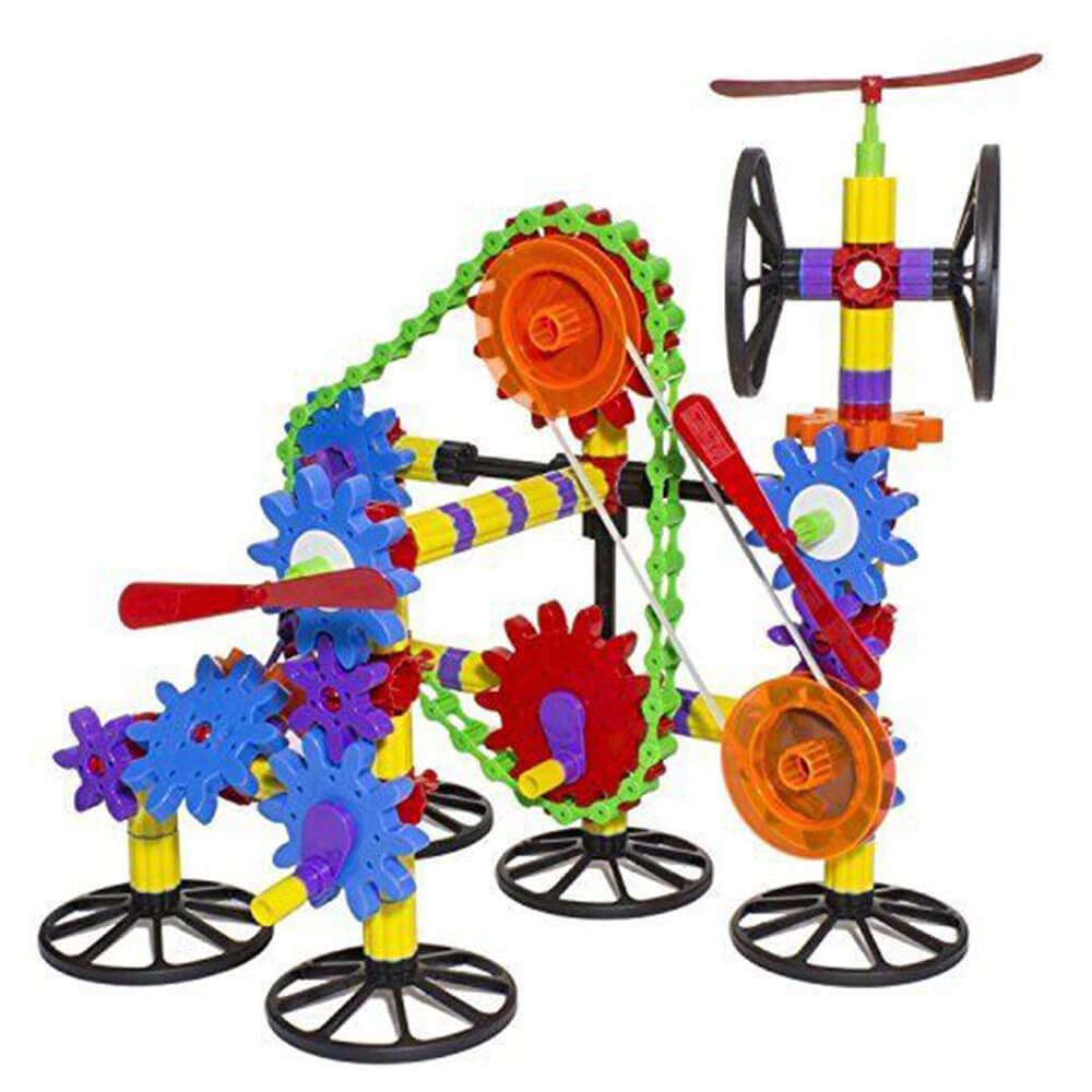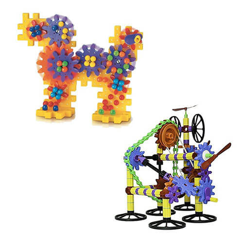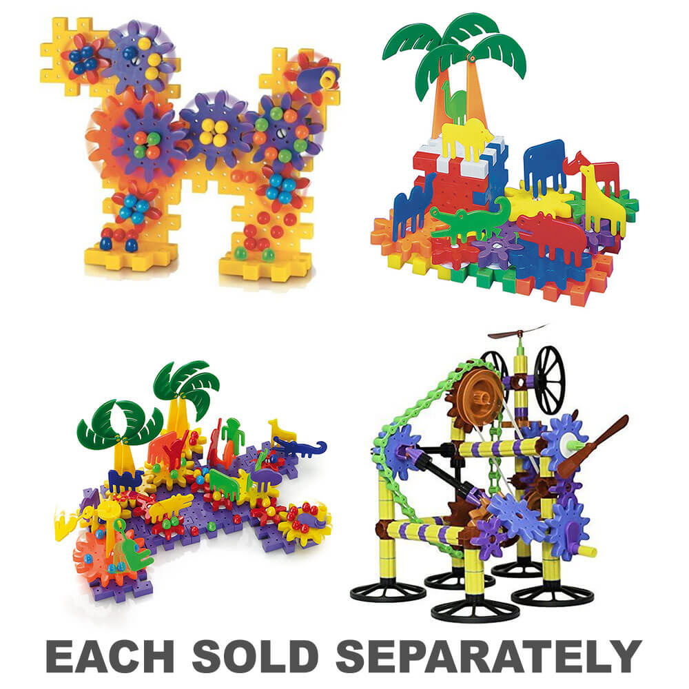• Verschiedene thematische Bausätze mit sich drehenden Zahnrädern