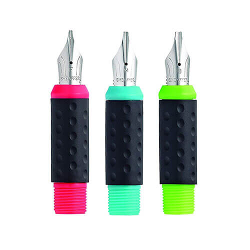 • Drei farbcodierte Federn für Strichvielfalt: feine Feder (rosa), mittlere Feder ( blaugrün), breite Feder (lindgrün)