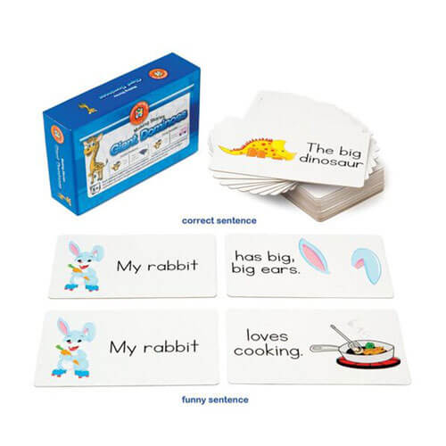 • Bilden Sie mit diesen Dominosteinen über 400 verschiedene Sätze.