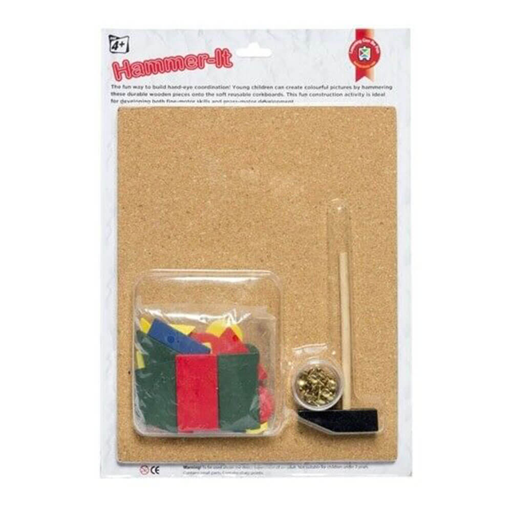 • Packung besteht aus Korkplatte (300 mm x 255 mm), Holzstücken, Reißnägeln und Holzhammer.