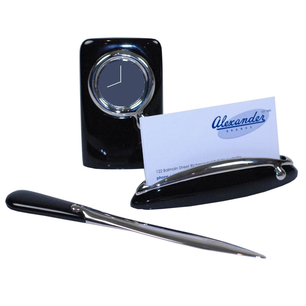 • Elevate your workspace with this sleek black desk set that combines elegance and functionality in one stylish package!