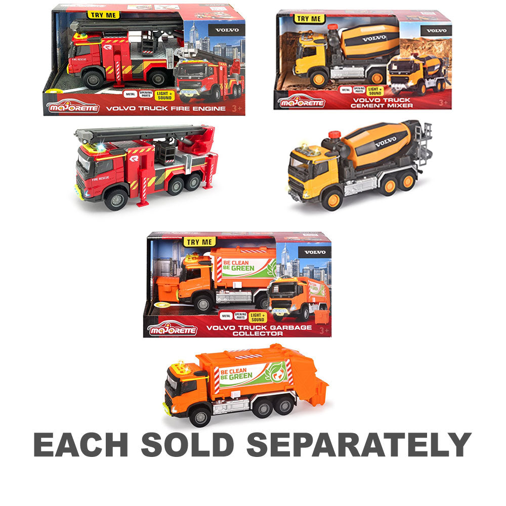 Majorette Volvo Truck Cement Mixer im Maßstab 1:43 aus Druckguss ist ein perfektes Geschenk für alle Fans von Modellbaufahrzeugen. Es verfügt über zwei verschiedene Soundeffekte sowie Scheinwerfer, einen Nebelscheinwerfer und zwei orangefarbene Warnleuchten zur Warnung des nahen Verkehrs. Außerdem gibt es einen ausklappbaren Drehschleuder und eine rotierende Mischtrommel, damit das Material wie auf einer echten Baustelle durch den Schießschacht ausgebracht werden kann. Dank seiner robusten Bauweise meistert der Volvo-Betonmischer selbst die schwierigsten Aufgaben. Das Fahrerhaus, der Kraftstofftank und die Kotflügel sind aus Metall, die übrigen Teile aus Kunststoff. Inklusive 2 x AAA-Batterien.