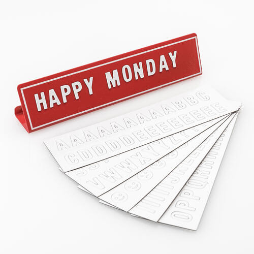 • Personalisieren Sie Ihren Schreibtisch mit Witz und Weisheit und lassen Sie das Büro mit über 100 Buchstaben und Symbolen lächeln, mit denen Sie nach Belieben spielen können.