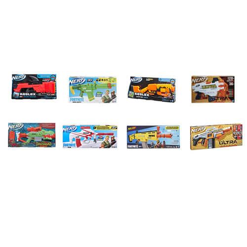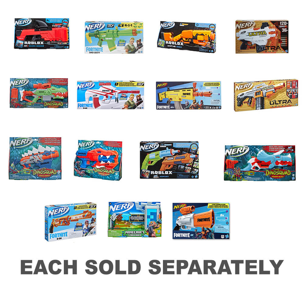 - Nerf Roblox Jailbreak: Armory Blaster 2er-Pack: Dieses Set enthält 2 Nerf Darts abfeuernde Blaster, die vom Roblox-Spiel Jailbreak inspiriert sind