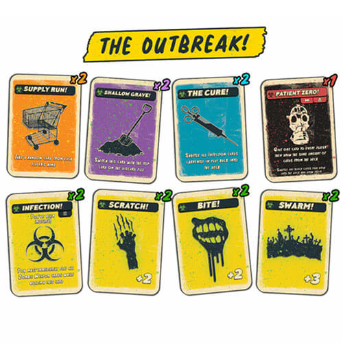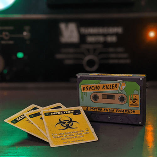 Es ist ein Spiel innerhalb Ihres Psycho Killer-Spiels. Es gibt zwei Infektionen im Deck, und wenn Sie sie aufheben, sind Sie anfällig für Zombie-Angriffe. Sie sollten die Infektion so schnell wie möglich an Ihre Freunde weitergeben, wenn Sie überleben wollen!