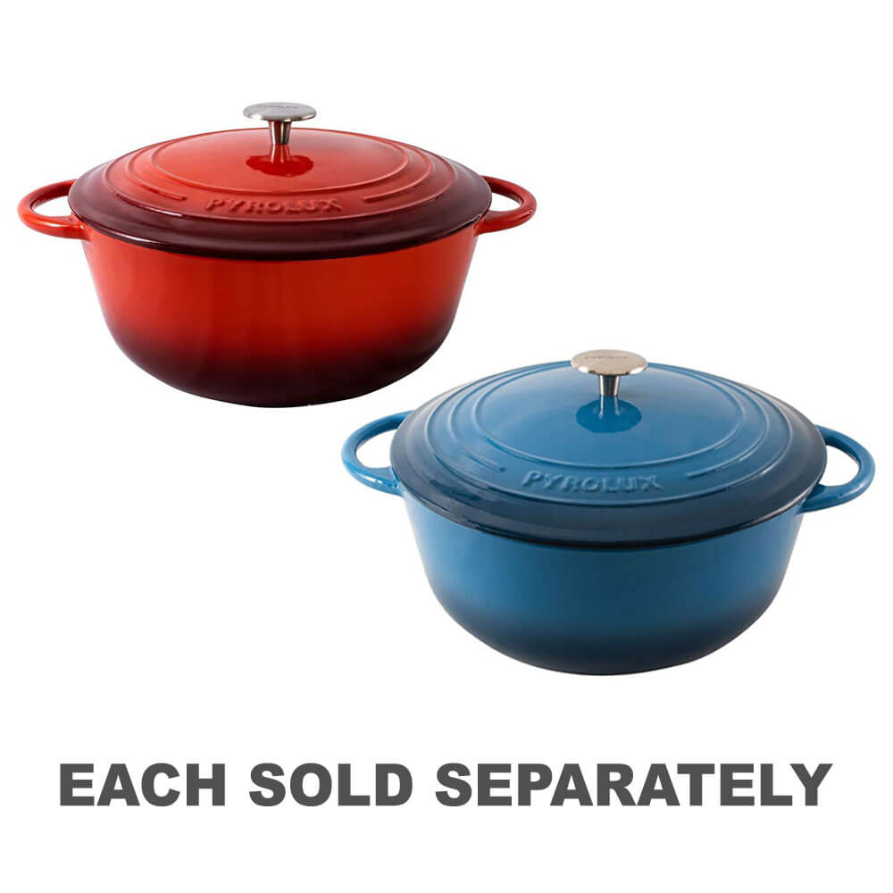 Der Pyrolux Pyrochef Gusseisentopf ist ein Leichtbautopf, der bis zu 40 Prozent leichter ist als herkömmlicher Gusseisentopf. Es kann auf jeder Herdart verwendet werden, auch auf Induktion. Mit einer 3-schichtigen Emailbeschichtung innen und außen ist diese Pfanne pflegeleicht und äußerst langlebig. Durchmesser: 20 cm. Fassungsvermögen: 2 Liter.