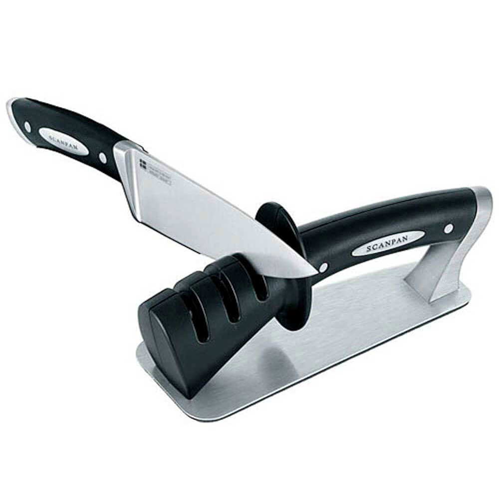 Dieser Scanpan-Messerschärfer unterteilt den Prozess des richtigen Schärfens eines Messers in drei einfache Schritte und macht es einfach und schnell, Ihren stumpfen Küchenmessern ein ganz neues Leben einzuhauchen. Mit einem Wolframkarbid-Schärfer, einem Diamant-Schärfer und einer Keramikplatte ist es eine hochwertige Lösung für Ihre Küche.