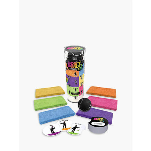 - 6 Schweißbänder, 1 Ball, 120 Karten, Anleitung
