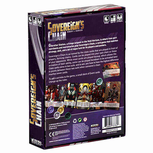 Sovereigns Chain, ein strategisches, halsabschneiderisches Kartenspiel, trägt seinen Namen aufgrund der Klassenkarten, die vor den Spielern gespielt werden und Ketten bilden. Sie können Karten auf Ihre eigene Kette oder die Ihrer Gegner spielen. Klassenkarten gibt es in zwei Farben, Sterne und Planeten, und um zu gewinnen, müssen Sie die höchste Punktdifferenz zwischen diesen beiden Farben haben, wenn jemandes Kette sieben Karten erreicht. Um dem Spiel eine besondere Note zu verleihen, ist ein kleines Kartendeck mit Ereigniskarten enthalten, mit einzigartigen Effekten, die das Spiel komplett verändern.