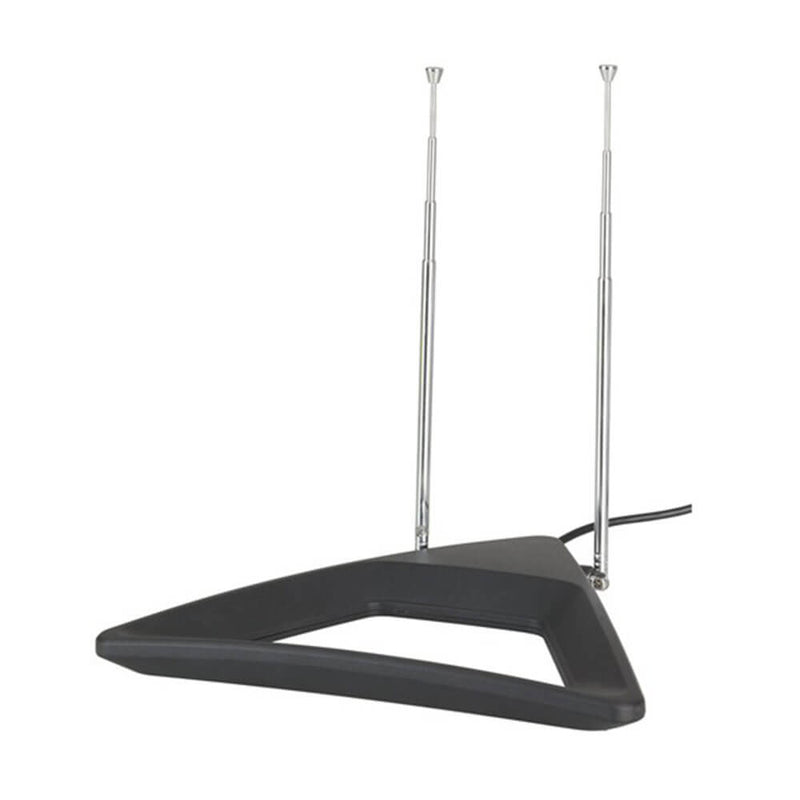 Das traditionelle „Kaninchen“; Ohrenantenne für die Moderne. Bei Flachbildfernsehern haben Hasenohrantennen nicht mehr den idealen Platz auf dem Gerät. Diese Hasenohren können flach auf einer Oberfläche sitzen oder an einer Wand montiert werden. Geeignet für Bereiche mit starkem Fernsehempfang.