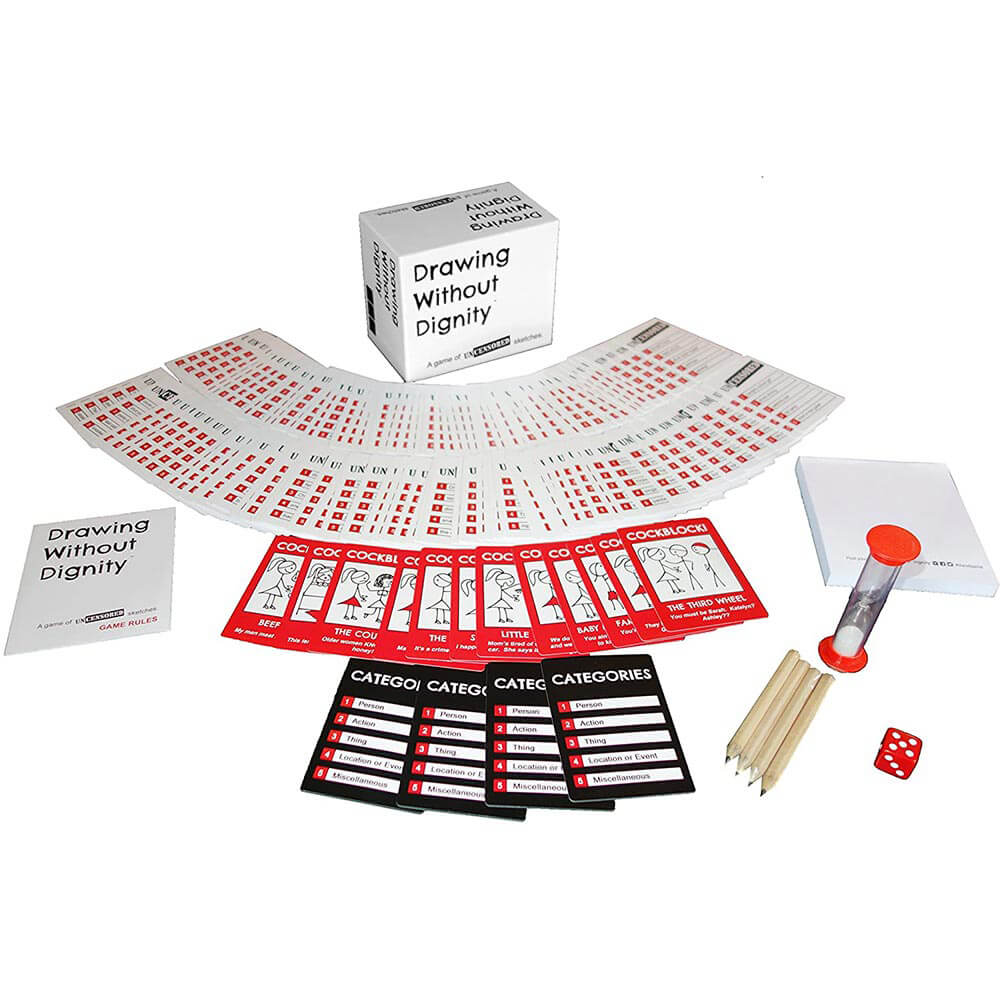 • Drawing Without Dignity ist das perfekte Partyspiel für den Spieleabend oder als Geschenk. Partyzeit ohne die Kinder! Aber im Ernst, das ist nichts für schwache Nerven und nur für Erwachsene.